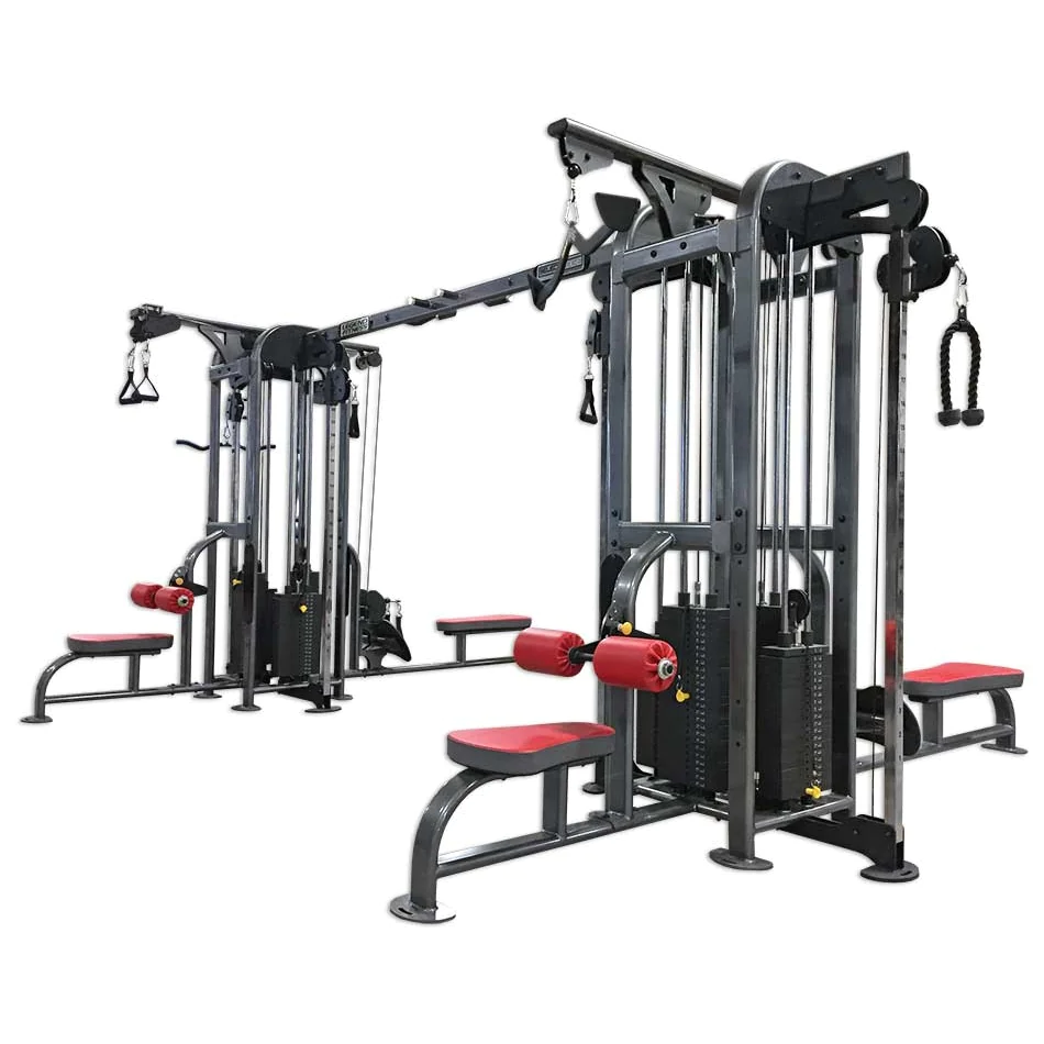 SelectEDGE 1138 Eight Stack Jungle Gym by Legend Fitness – The SelectEDGE 1138 Eight Stack Jungle Gym makes the perfect resistance training centerpiece accommodating up to nine users at once. This selectorized jungle gym comes packed with an adjustable cable crossover, two seated lat rows, two lat pulldowns, two adjustable height cable columns and multi-grip pull-up bars for bodyweight training. One of the lat pulldown stations and one of the lat row stations feature dual pulleys, which gives users the ability to work both unilaterally and bilaterally therefore expanding the training versatility of the 1138 even more. Our multi-stack jungle gym is manufactured in the USA and includes all the high grade specifications youd expect including 11 gauge oval steel tubing, high density padding and rollers, smooth swiveling pulleys, aviation grade cables and your choice of powder coat and upholstery colors. The 1138 cable machine arrives ready for business with two MAG handles, four web grip handles, one split rope attachment, and one curl bar.