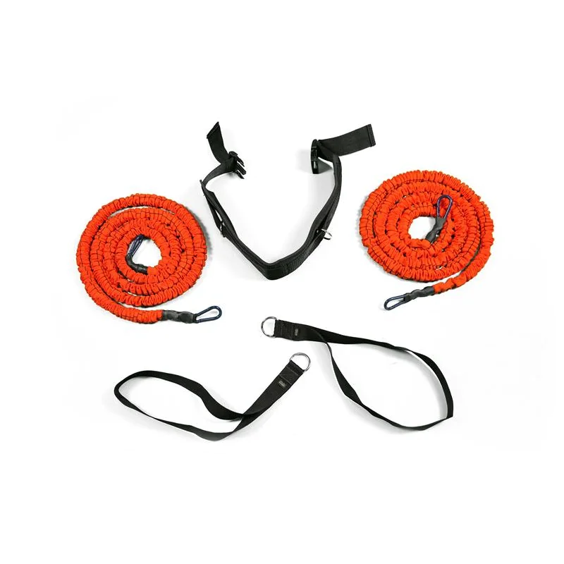 Stroops Slastix Cheetah The Cat – The Cat is a specialized tool for developing faster lateral movements. One of Stroops most ingenious innovations, The Cat allows athletes to increase both strength and spatial awareness while competing in the actual sport they are training for, or during any type of training drill. Consisting of a belt with rings attached to two Slastix bands, which can be anchored to another person or stationary object, The Cat provides added resistancefrom one or two directionsduring real-world training. Attached to two anchored resistance bands, the athlete works against resistance in 360 degrees. This piece of equipment allows the athlete to go forward, backward, and side to side. By connecting the elastics end to end, the Cat can double as an overspeed training device.