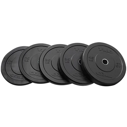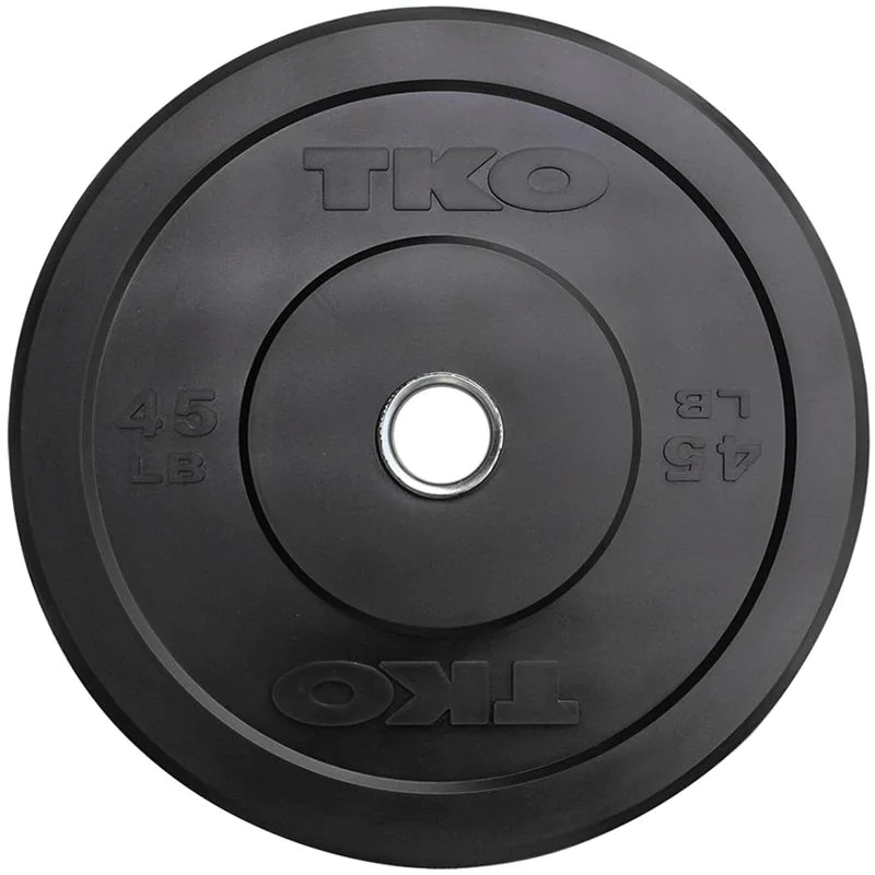 TKO Solid Rubber Bumper Plates For Commercial Gyms and Military Installations – Ideal for commercial or GSA Open Market purchase, TKO 802-BP Black Solid Rubber Bumper Plate Sets are a hard working bumper with a 90 shore rubber hardness for minimal bounce and a heavy-gauge reinforced steel hub to protect the structural integrity of your plates and bar even during the most intense bumper plate workouts. Before they leave the warehouse, all sizes, including the 10’s and 15’s, must be able to pass a 10,000 cycle drop test. Because of the stringent testing involved, TKO can offer a 2-year warranty on their bumpers (25, 35 and 45 lb. sizes) to insure maximum life and performance in any environment. TKO bumper plate sets are a perfect addition to garage gyms, school weight rooms, commercial gyms and military installations and incorporate seamlessly into your favorite WOD or HIIT programs.