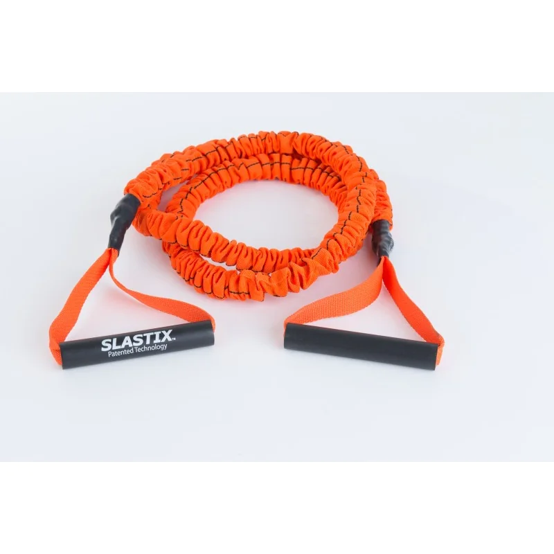 There are a few different Slastix Toner band lengths and handle options to choose from. Length choices are 48″ and 72″ available in MMA orange or with black sleeves and color coded handles. The 48″ length is great for performing stand-alone exercises like bicep curls and overhead presses where you actually stand on the band to anchor it to the floor. The 72″ long Stroops bands stretch to a total length of approx. 24′ and are often used in conjunction with different anchor points such as heavy gym equipment frames or poles. To shorten your 72″ Toner Power Band simply wrap it around your anchor point until the desired length is achieved.