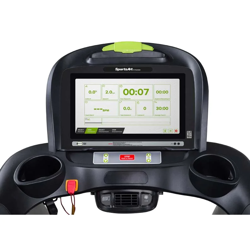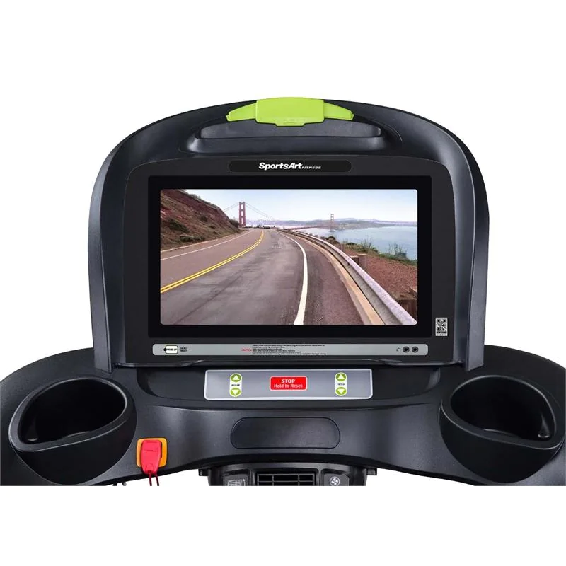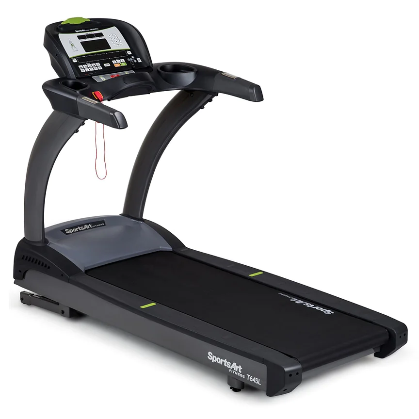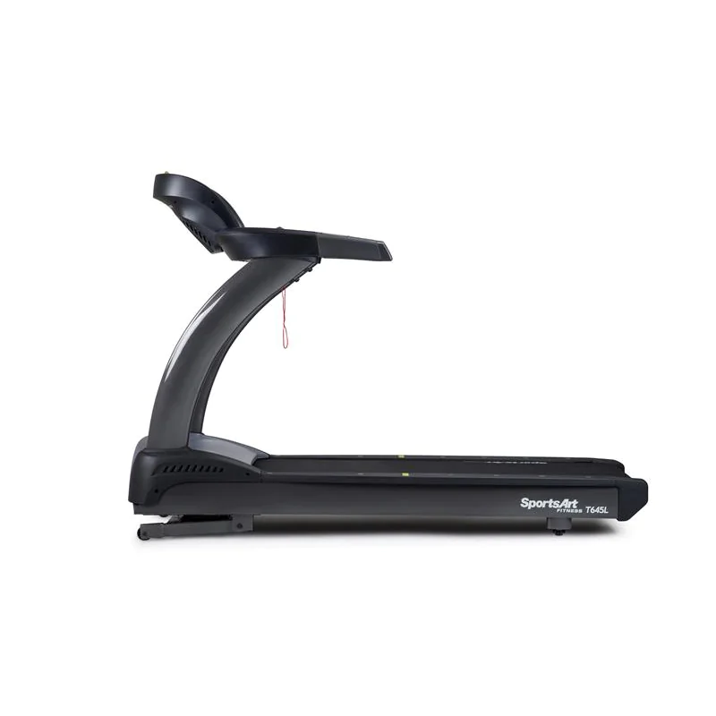 SportsArt Commercial Treadmill | T645L Performance Series – The SportsArt T645L Treadmill and SportsArt T645L-16 Treadmill are commercial grade treadmills built for all day use in dues paying facilities. Both models offer the lowest price point in the SportsArt commercial treadmill line-up. Each is packed with a powerful 4.0 hp AC Servo motor, spacious 22 x 61 running surface to accommodate any size user and a maximum weight limit of 450 lbs. Members, trainers as well as police officers, firemen and military personell will enjoy the numerous treadmill workout and fitness tests with speed, time, calories burned per hour, distance and heart rate featured on the LED display screen. Want to upgrade to a touchscreen display? Choose the SportsArt T645L-16 treadmill option that features a crisp SENZA 16 LED touchscreen with built-in TV tuner and internet connectivity.