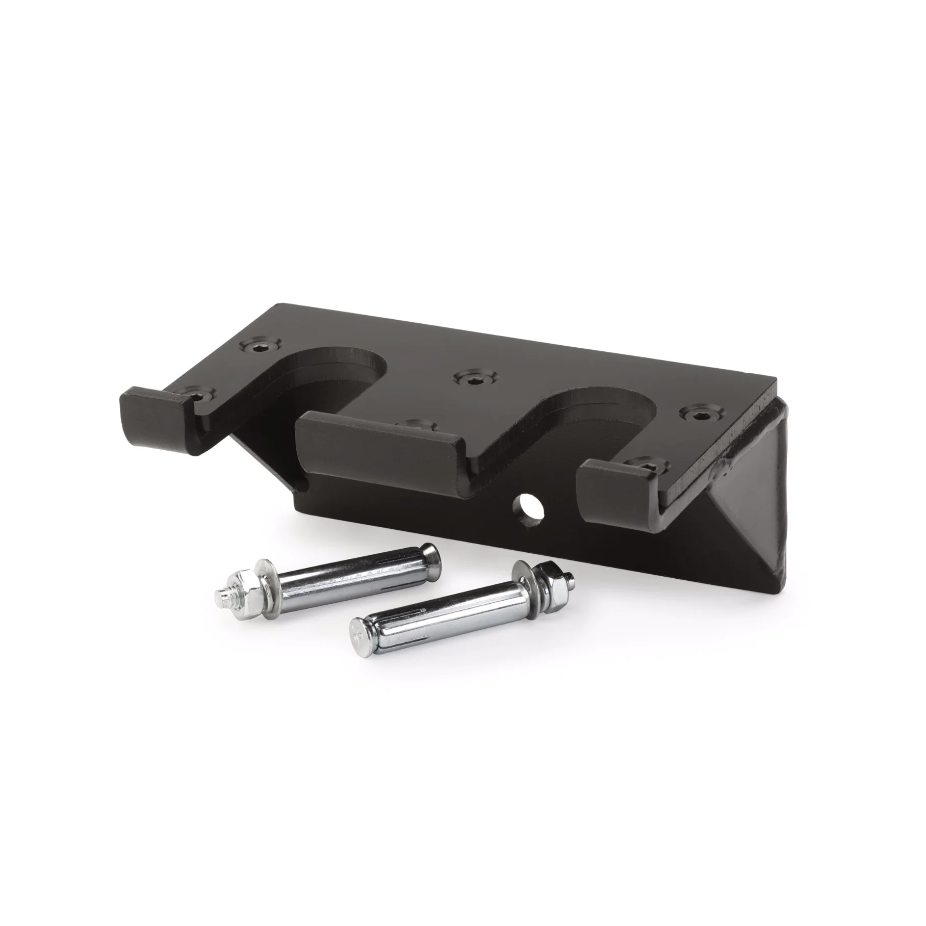 What’s in the box? Each IRON COMPANY wall mounted Olympic bar holder arrives with masonry anchor hardware included for easy installation. If you want to mount your vertical bar hanger to drywall you can pick up a set of heavy-duty drywall anchors capable of supporting the bar holder and a full size Olympic bar at your local hardware store. Professional installation for either installation option is recommended!