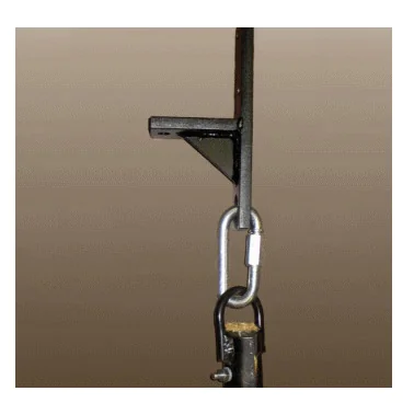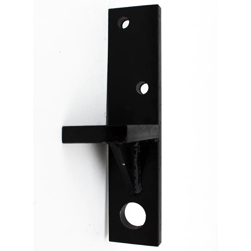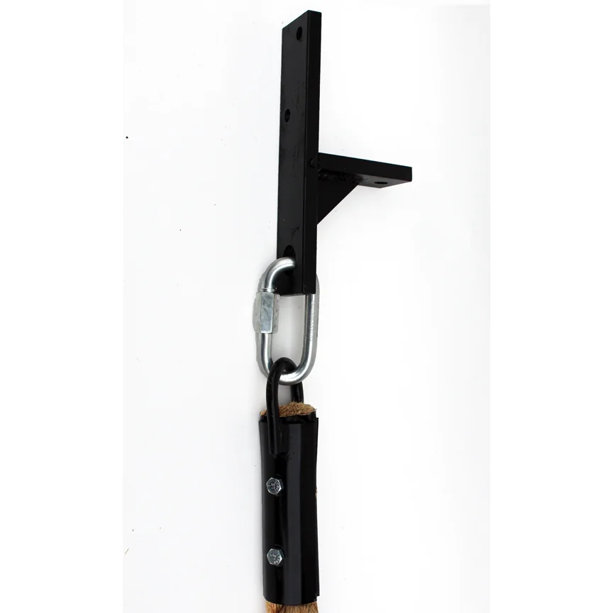 Heavy duty steel L fitting bolts onto wood beam from side and bottom dimensions. Includes one rope connector link.